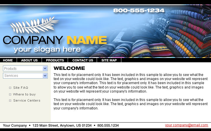 Industrial web design sample 135 allows you to imagine your website in a 2 column design with easy to use navigation and on-site search tool. Add your company logo and branding! Answer common pre-sale questions with an onsite FAQ! Imagine a design similar to this personalized with your images!